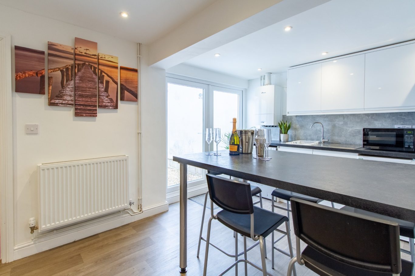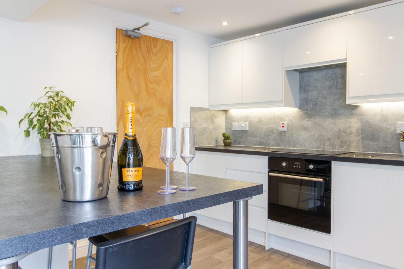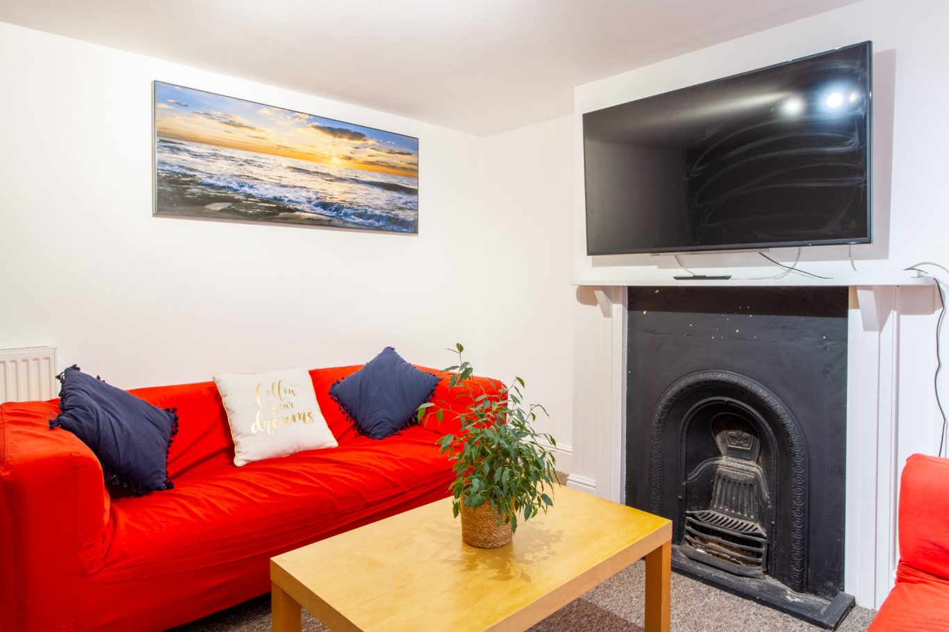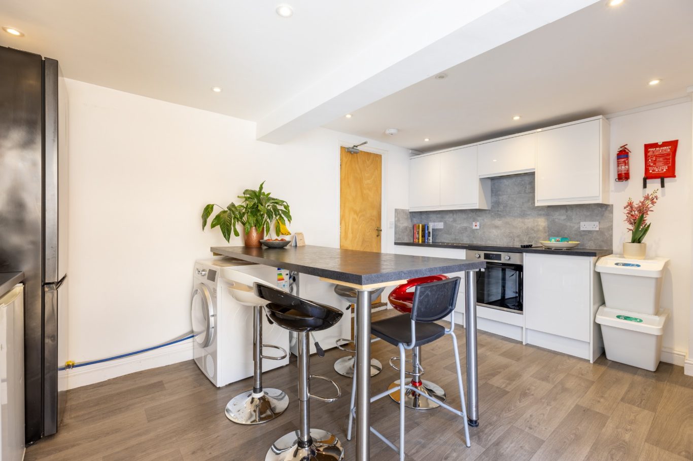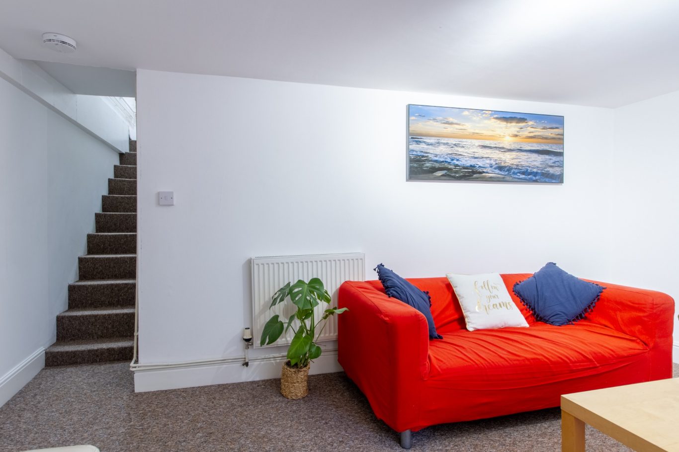 The basement sitting room is ideal for chilling out and making noise without disturbing your flatmates. Enjoy the comfort of plush sofas and a huge 50″ TV with Freeview.
