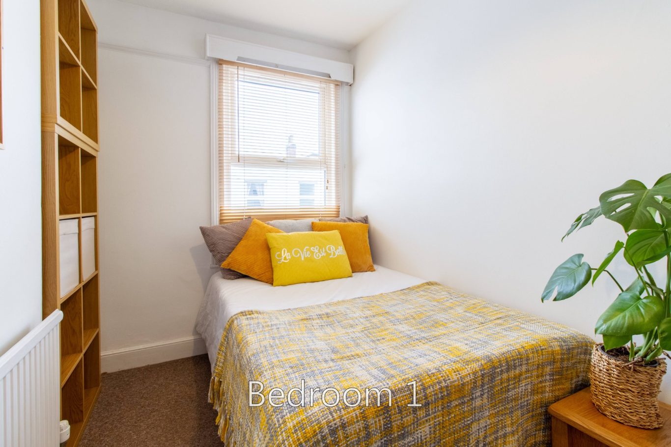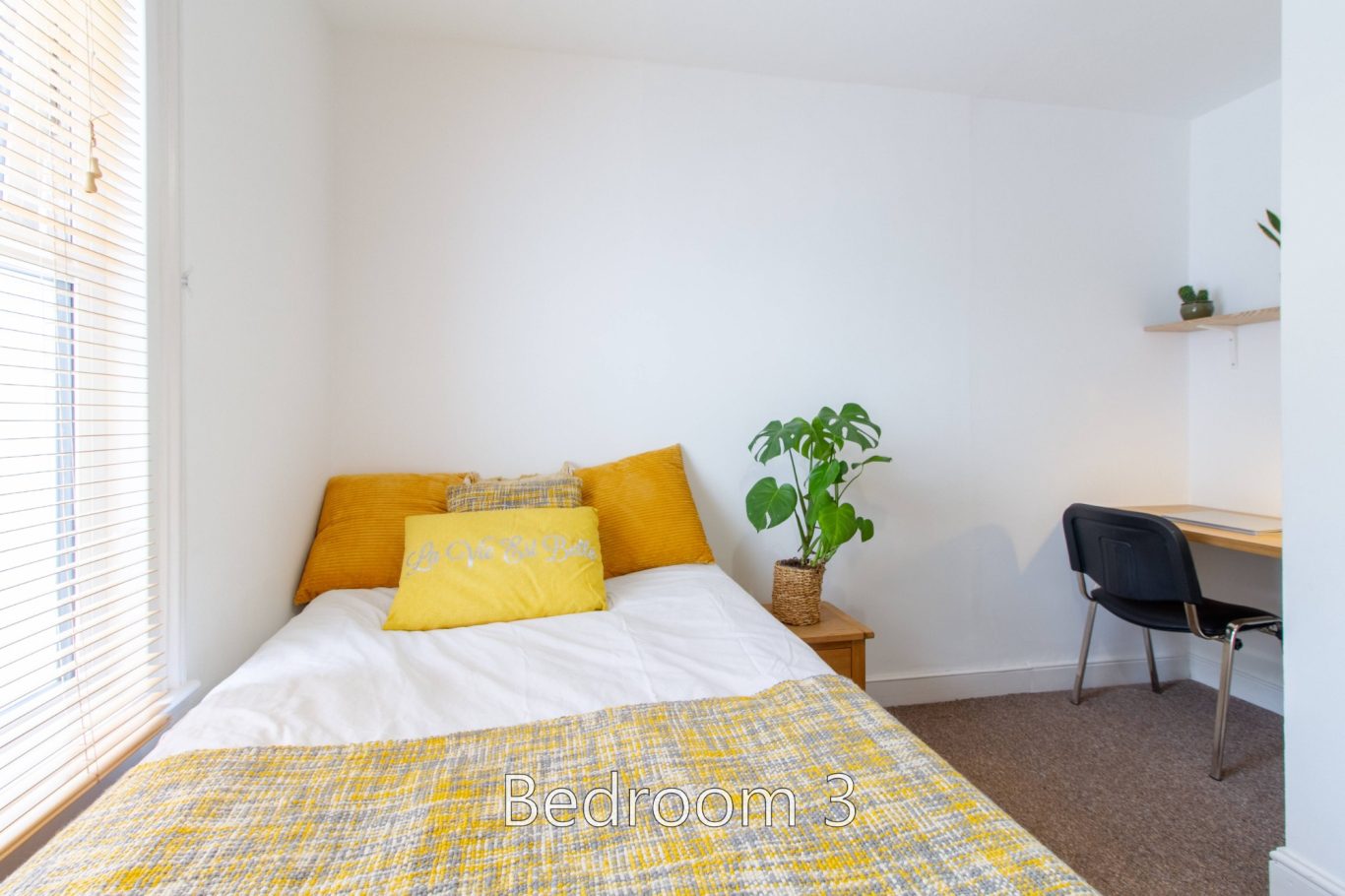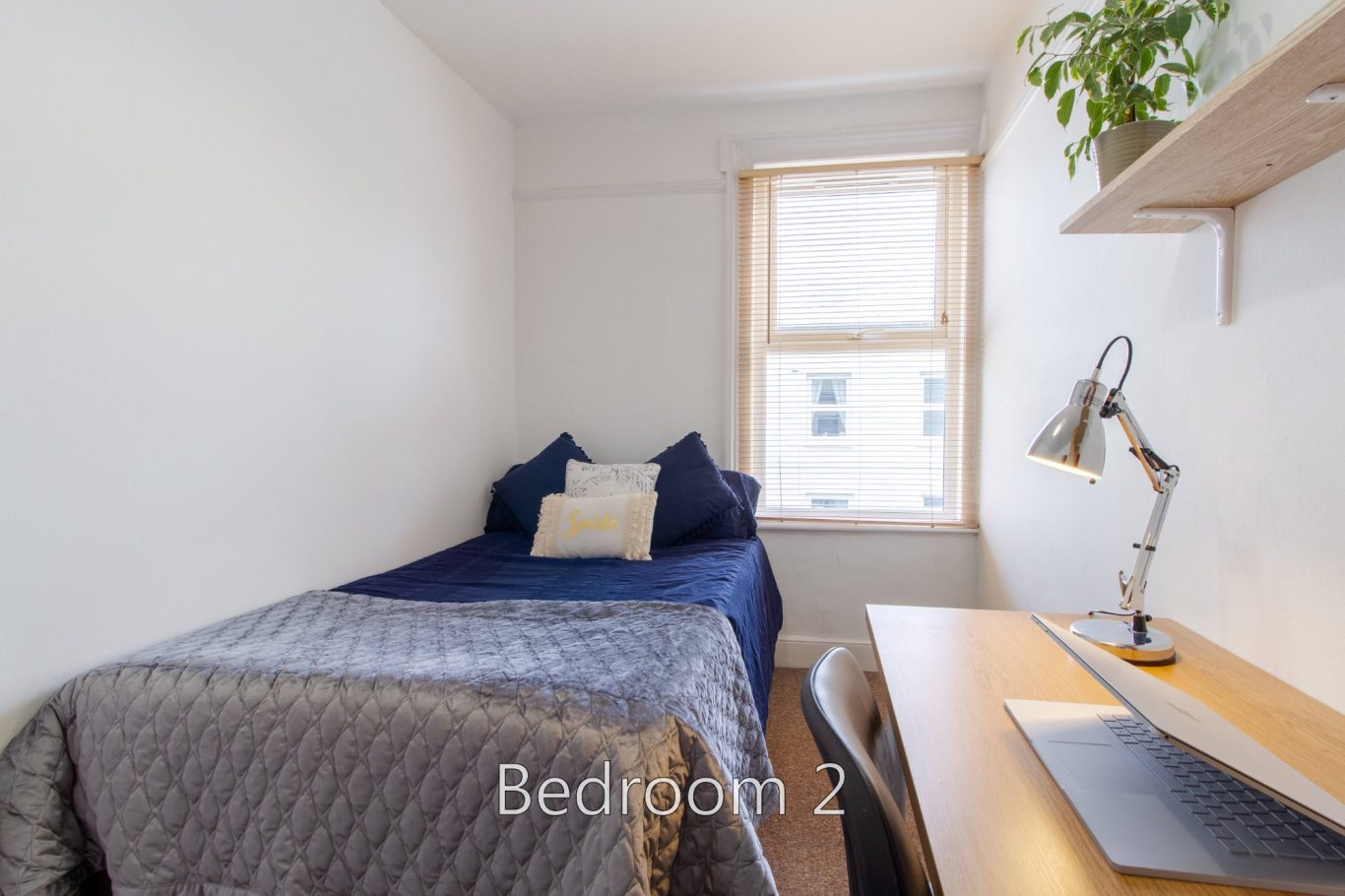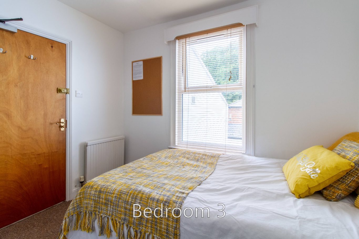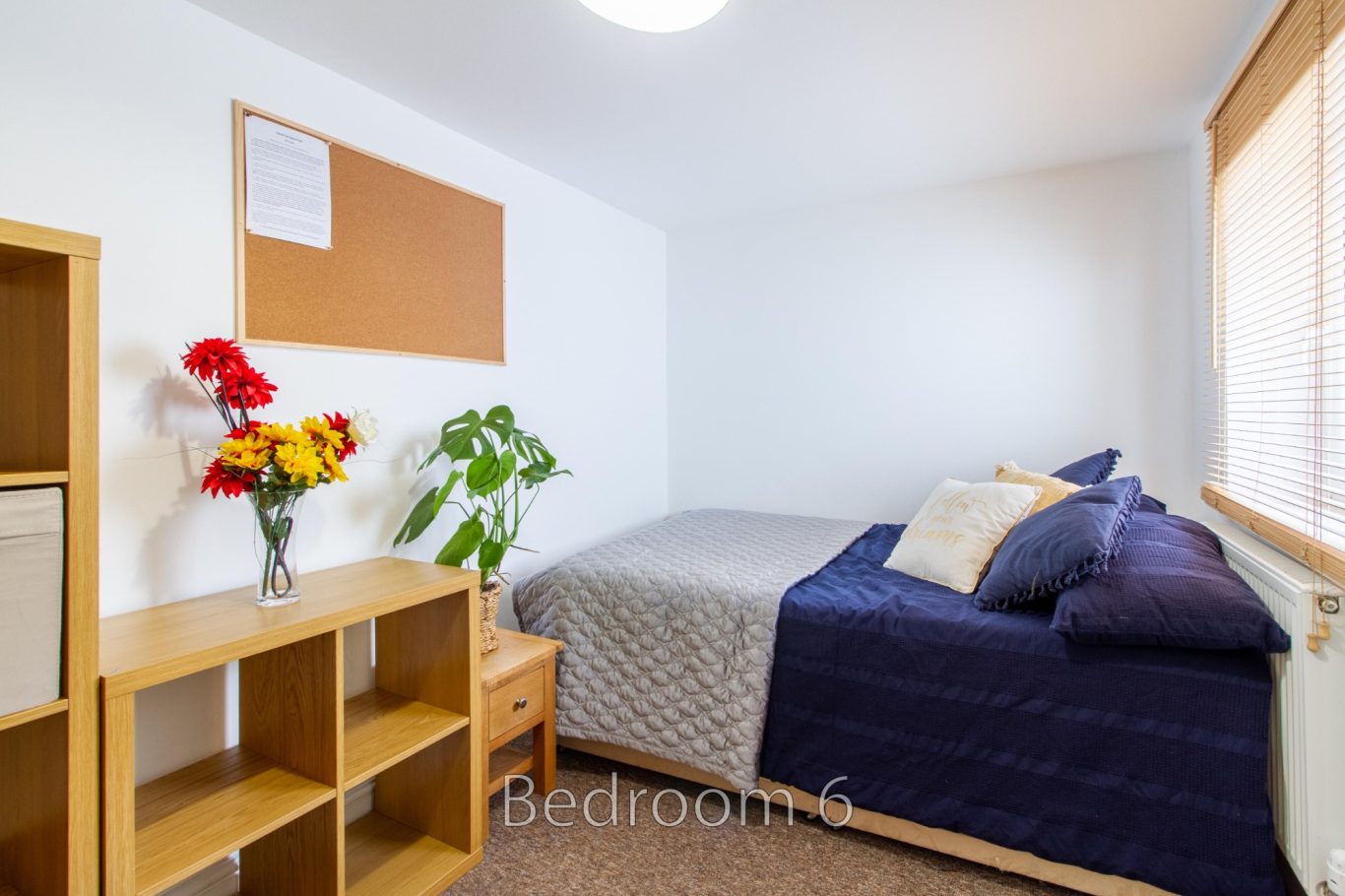 Located on the first floor at the front of the house, this bright room features a double divan bed with storage, a large storage unit, desk, chair, and venetian blinds. The room is fully carpeted and filled with natural light.