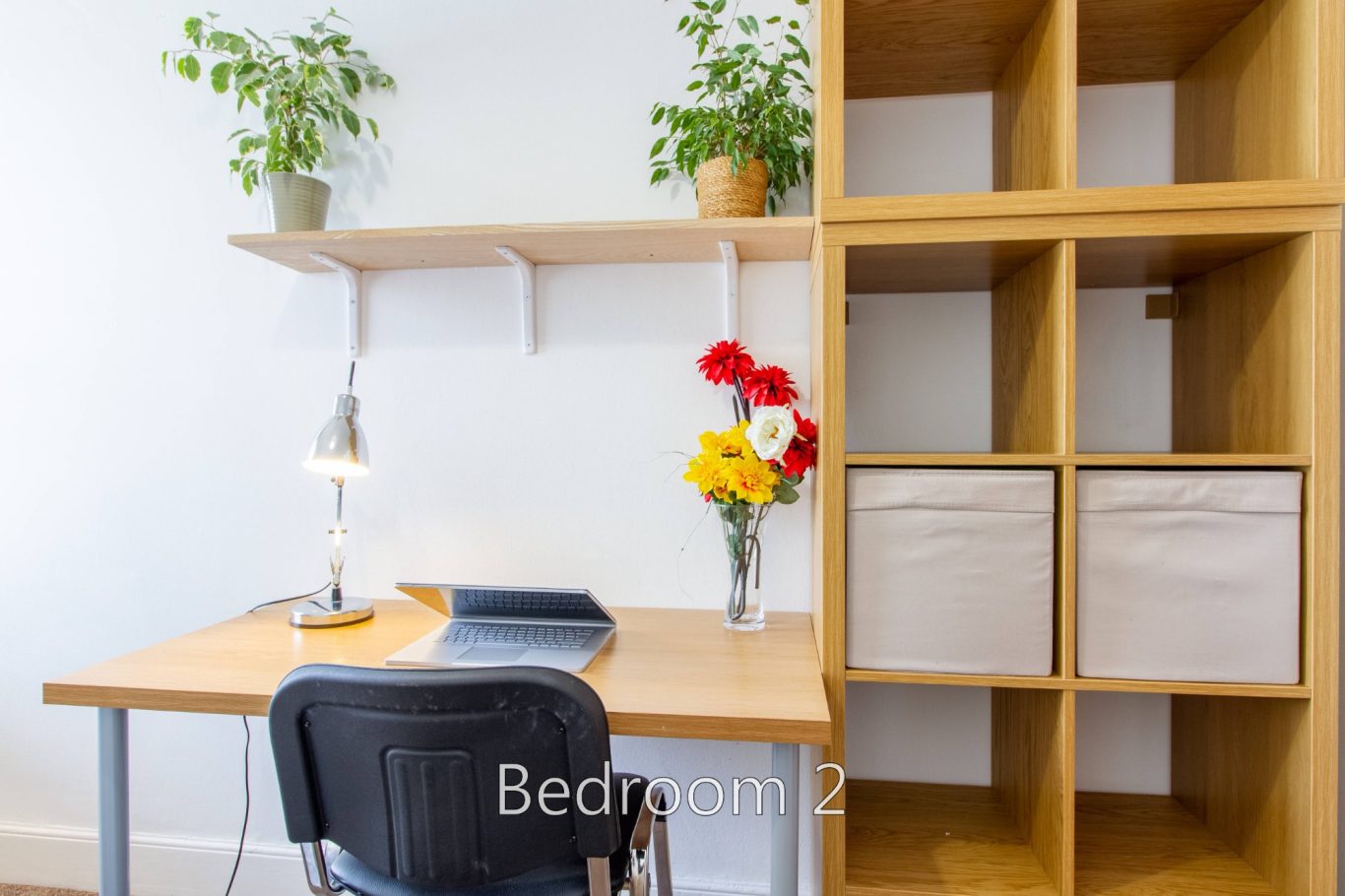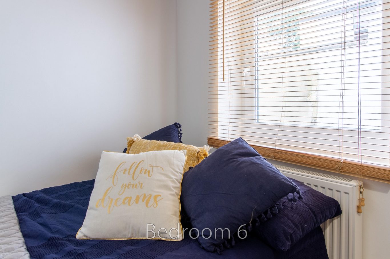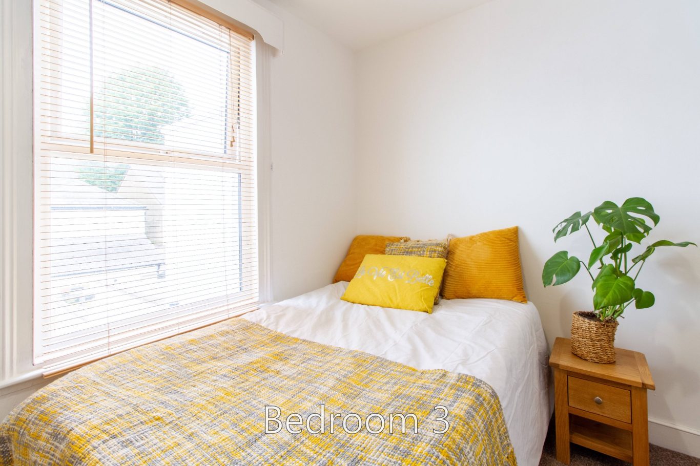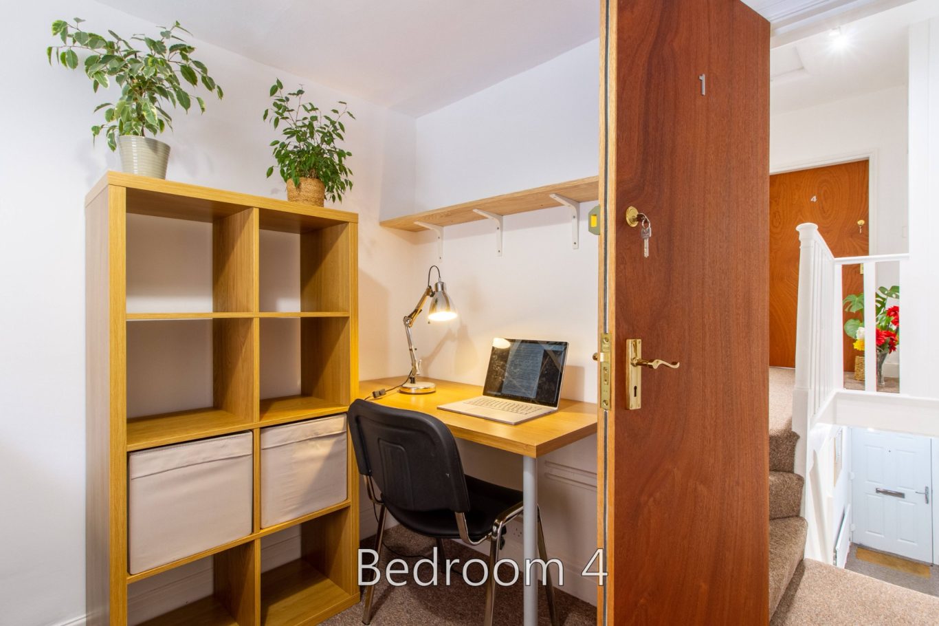 Located on the first floor at the front of the house, this bright room features a double divan bed with storage, a large storage unit, desk, chair, and venetian blinds. The room is fully carpeted and filled with natural light.